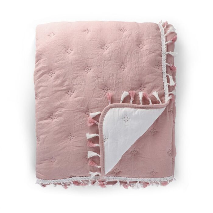 De GRANNA sprei heeft een mooie roze kleur die het interieur zal verwarmen en een gezellig karakter zal geven. Het heeft kleine reli�fs, gerangschikt in een regelmatig patroon. Daarnaast is het afgewerkt met afwisselend witte en roze kwasten, die ieders aandacht zullen trekken. Van binnenuit is het wit, zodat je bij het omdraaien de kamer kunt afzwakken. De sprei is niet alleen een decoratief element, maar beschermt beddengoed ook tegen vuil en stof. Het kan worden gebruikt als een deken tijdens een dutje overdag of een extra dekking tijdens koudere nachten.