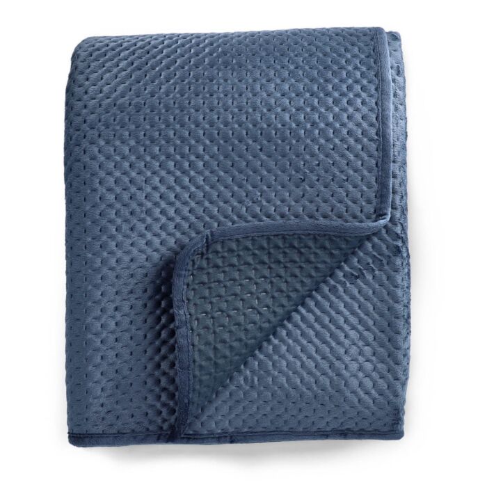 Narzuta ZEMI to elegancki element wyposażenia, który pozytywnie wpłynie na aspekty wizualne wnętrza domu. Występuje w kolorze granatowym, dlatego możesz łączyć ją ze wszystkimi innymi kolorami. Materiał posiada wytłoczenia w postaci małych kwadratów. Wykonana z wysokiej jakości poliestru, który jest wytrzymały. Produkt jest przydatny oraz dekoracyjny. Wprowadza do pomieszczenia miłą i przyjemną atmosferę oraz dodaje mu ciepła, wdzięku i charakteru. Wymiary: 200 cm x 220 cm.