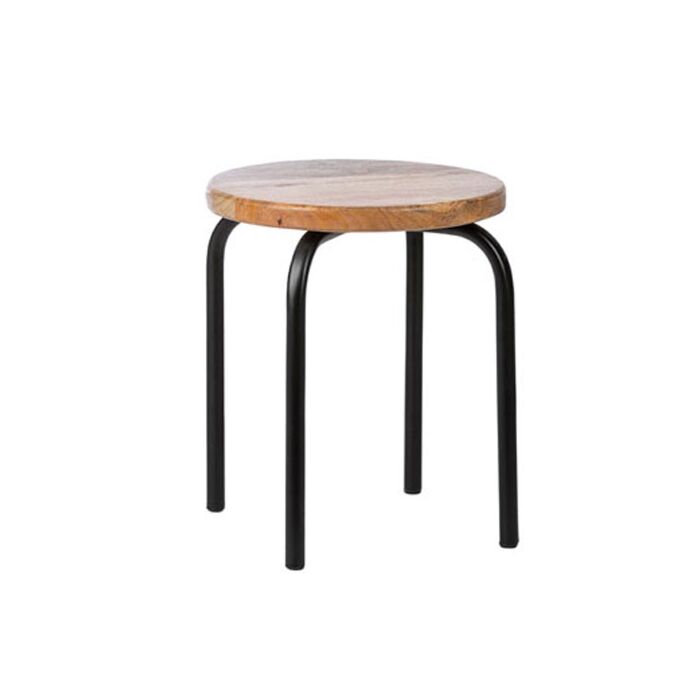 Dimensions: Approximately 30 x H 35 cm. The stool has metal legs and a wooden seat.