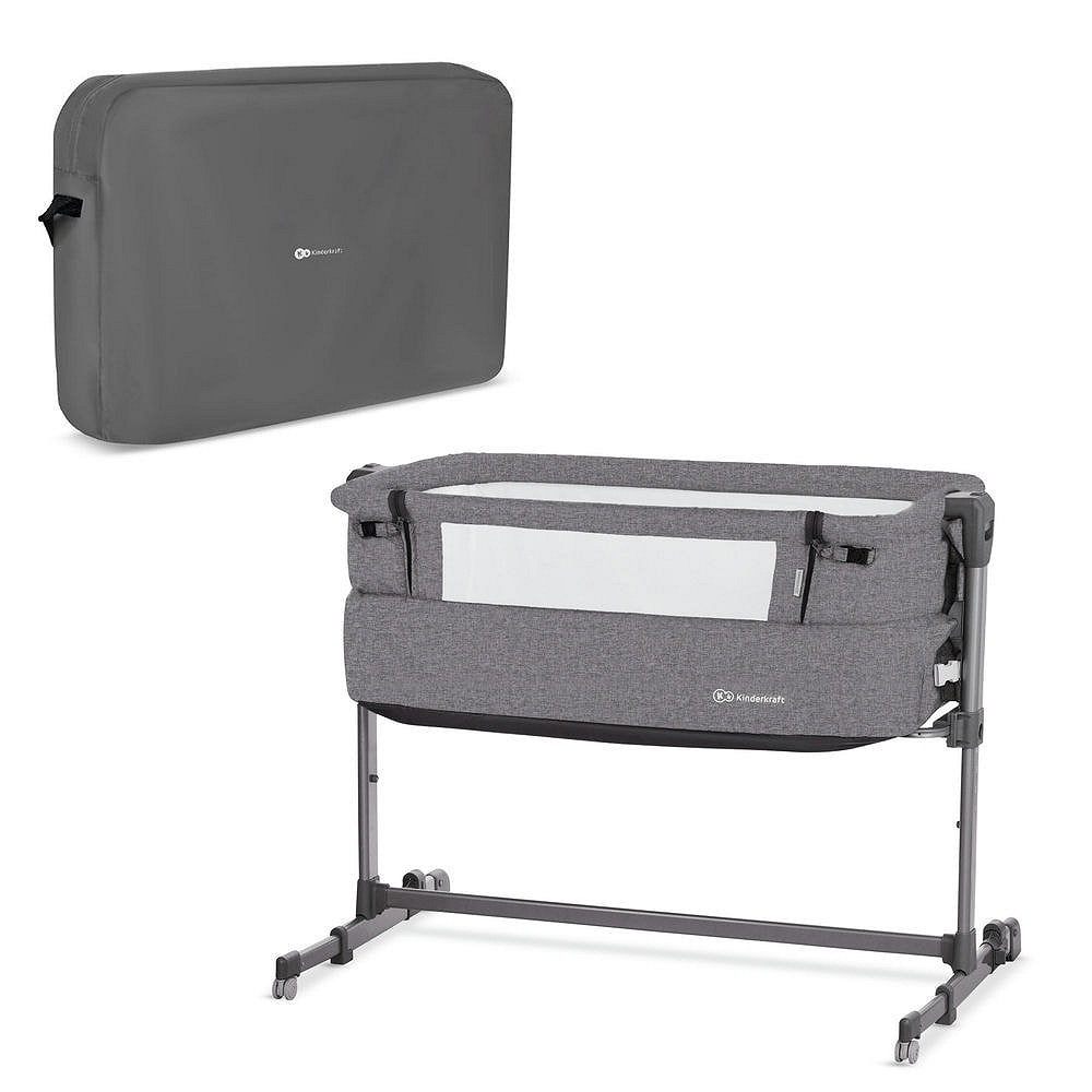 Kinderkraft | Co Sleeper | Neste UP - Dark Grey Melange - 5 Height Levels - 3-in-1 Design