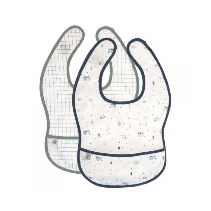 The Lässig Slab Garden Explorer Tractor comes in a convenient pack of two, designed with spill protection for young children venturing into self-feeding. The playful prints on the bibs engage hungry little ones to explore the forest and its animal inhabitants while seated at the dining table.
