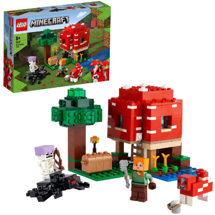 The LEGO Minecraft Set 21179, the Mushroom House, is built to capture the essence of the Minecraft world. The dimensions of the set are designed for easy play and display. Crafted from high-quality, durable LEGO materials, this set ensures long-lasting fun and enjoyment.