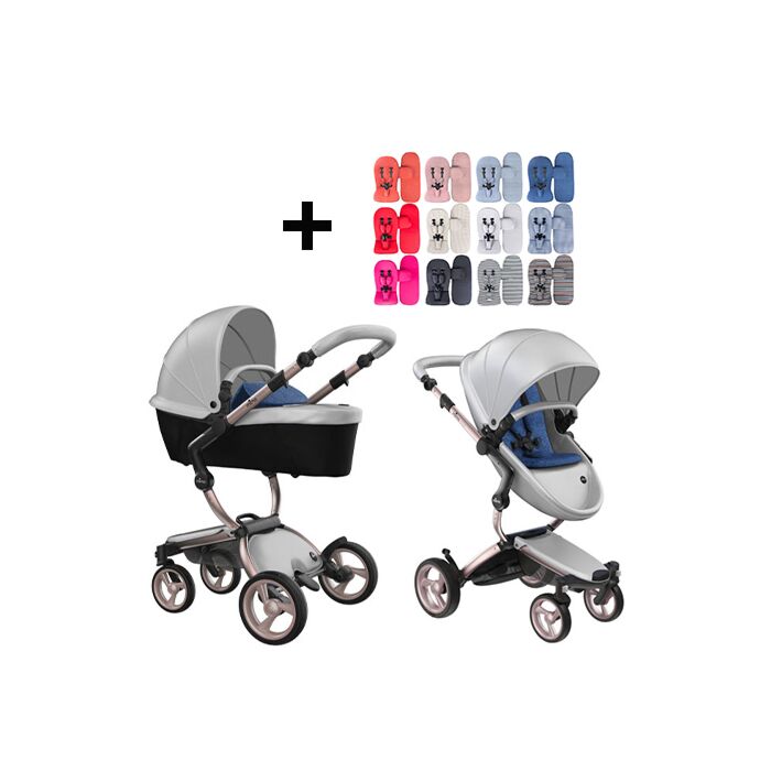 Mima | Xari Stroller | Frame - Rose Gold | Seat + Canopy - Argento | Starter Pack - Denim Blue