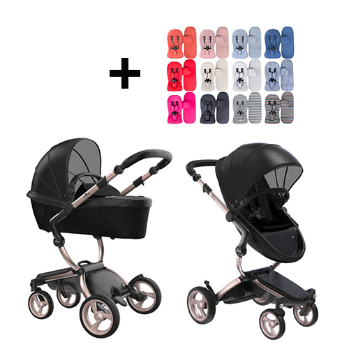Mima Xari Stroller | Frame - Rose Gold | Seat + Canopy - Black | Starter Pack - Black
