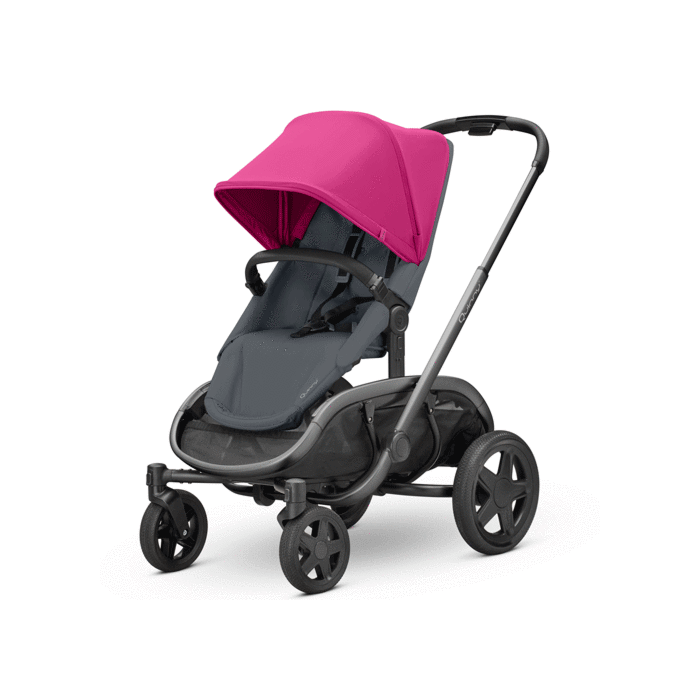 The Quinny Hubb Mono in Pink on Graphite is designed for parents seeking a versatile and stylish stroller solution right from the moment of birth. This innovative stroller can accommodate your newborn in three configurations - an ultra-light travel cot, a comfortable cocoon, or the compatible Maxi-Cosi® Pebble Plus car seat. All options easily attach to the same sturdy frame, ensuring seamless transitions for parents on the go.