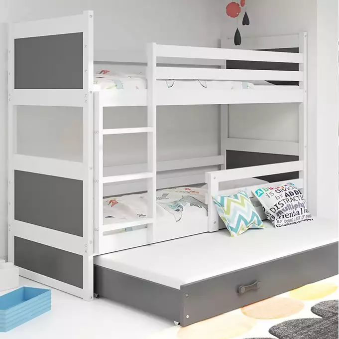 RICO 3-Person Youth Bed 90X200 with Mattress and Drawer, White/Graphite