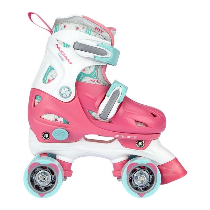 Nijdam Rolschaatsen Junior Verstelbaar Hardboot - Disco Twirl - Roze/Wit/Lichtblauw - 30-33