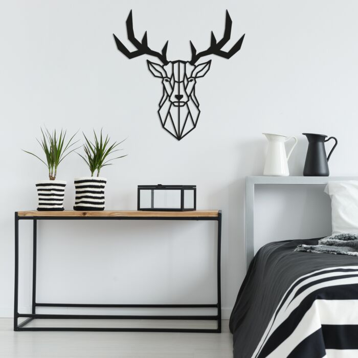 Asir Decoratief metalen wandaccessoire Hert - Zwart - 51 x 51 cm