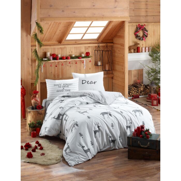 Asir Ranforce dubbele quilt cover set - Wit Grijs