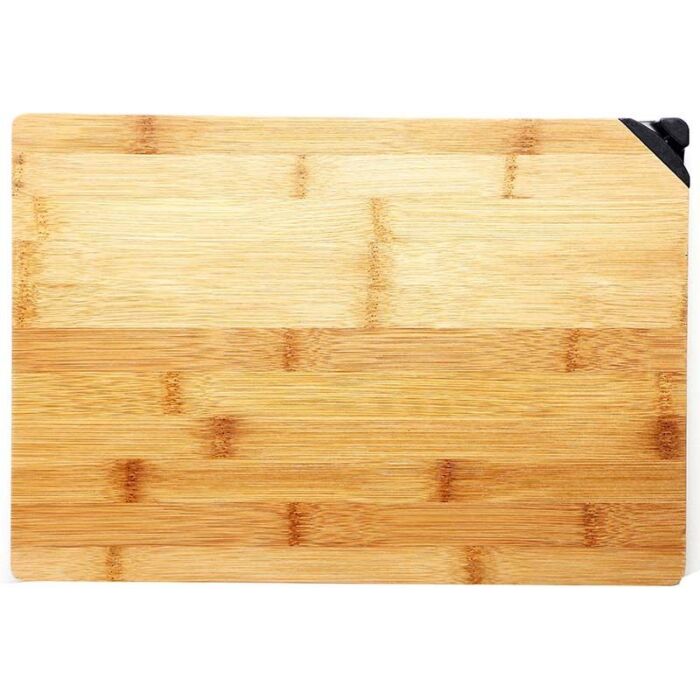 - Een massieve bamboe snijplank, voorzien van een messenslijper.