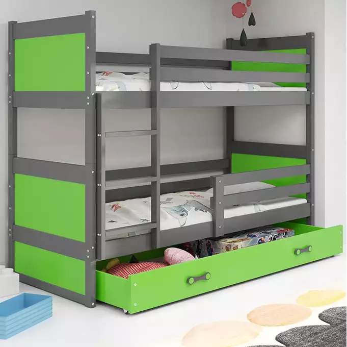 RICO 90X200 Youth Loft Bed with Mattress and Drawer, Graphite/Green