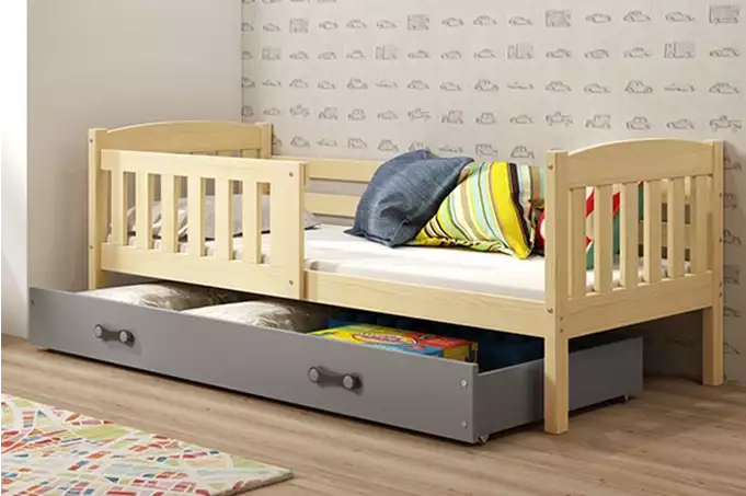 Youth Single Bed KUBUŚ 90x200 with Drawer, Pine/Graphite