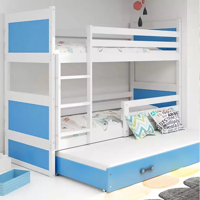 RICO Triple Youth Bed 90X190 with Drawer, White/Blue