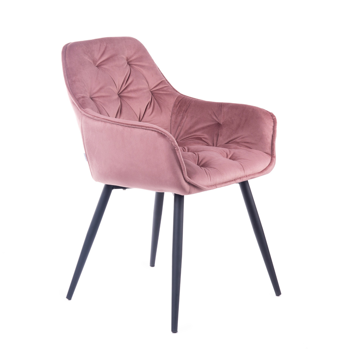 Krzesło FLOSSI w pastelowym różowym kolorze posiada pikowane zdobienia, które sprawiają, że produkt nie jest banalny i szablonowy. Artykuł idealnie nada się do stylu glamour, cechujący się kolorytem i nowoczesnością.
