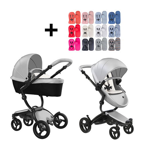 Mima | Poussette Xari | Châssis - Noir | Siège + Capot - Argento
