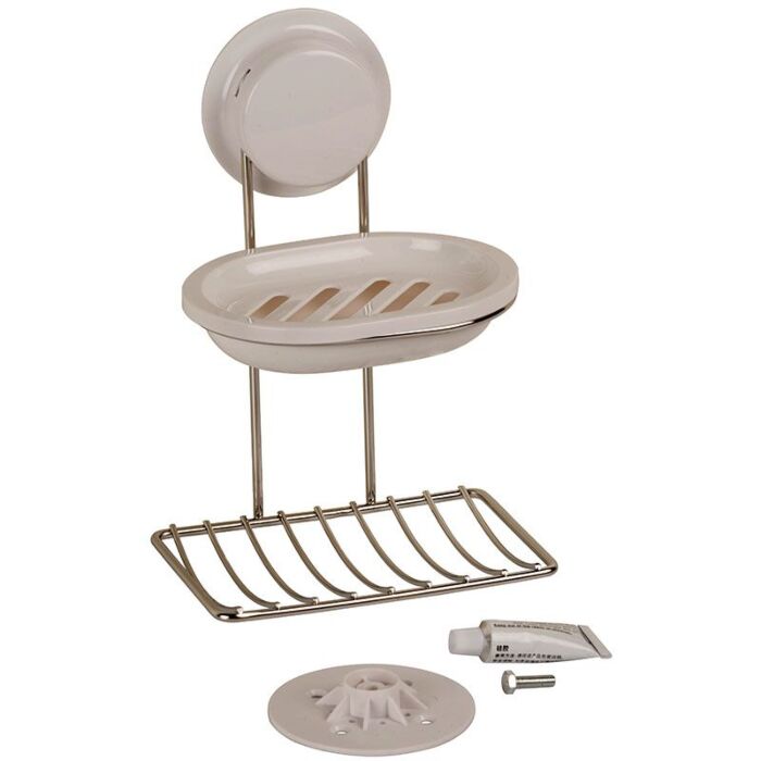 - Een RVS wandhouder met een losse kunststof zeepbak.