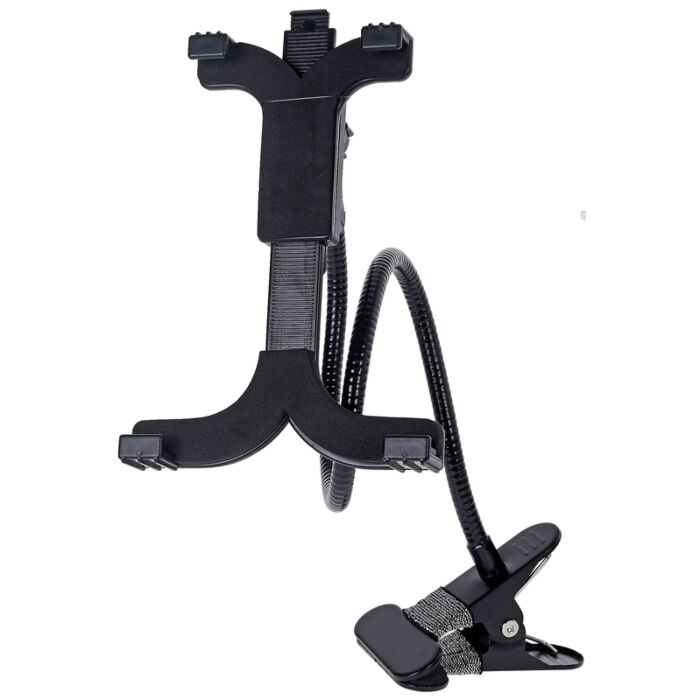 - Met stevige klem om de tablethouder vast te klemmen aan buro, tafel, etc