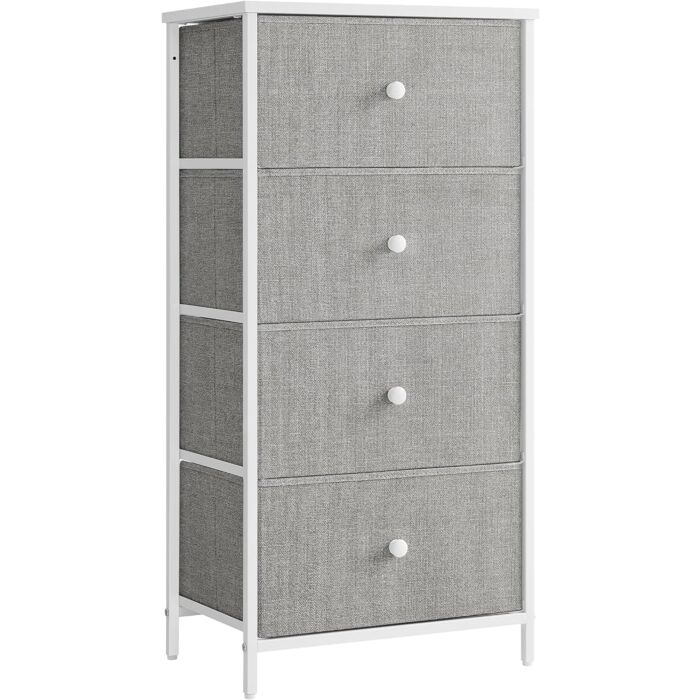 Vous commentez : Commode opbergkast met 4 stoffen laden metalen frame hoog en smal Lichtgrijs-wit