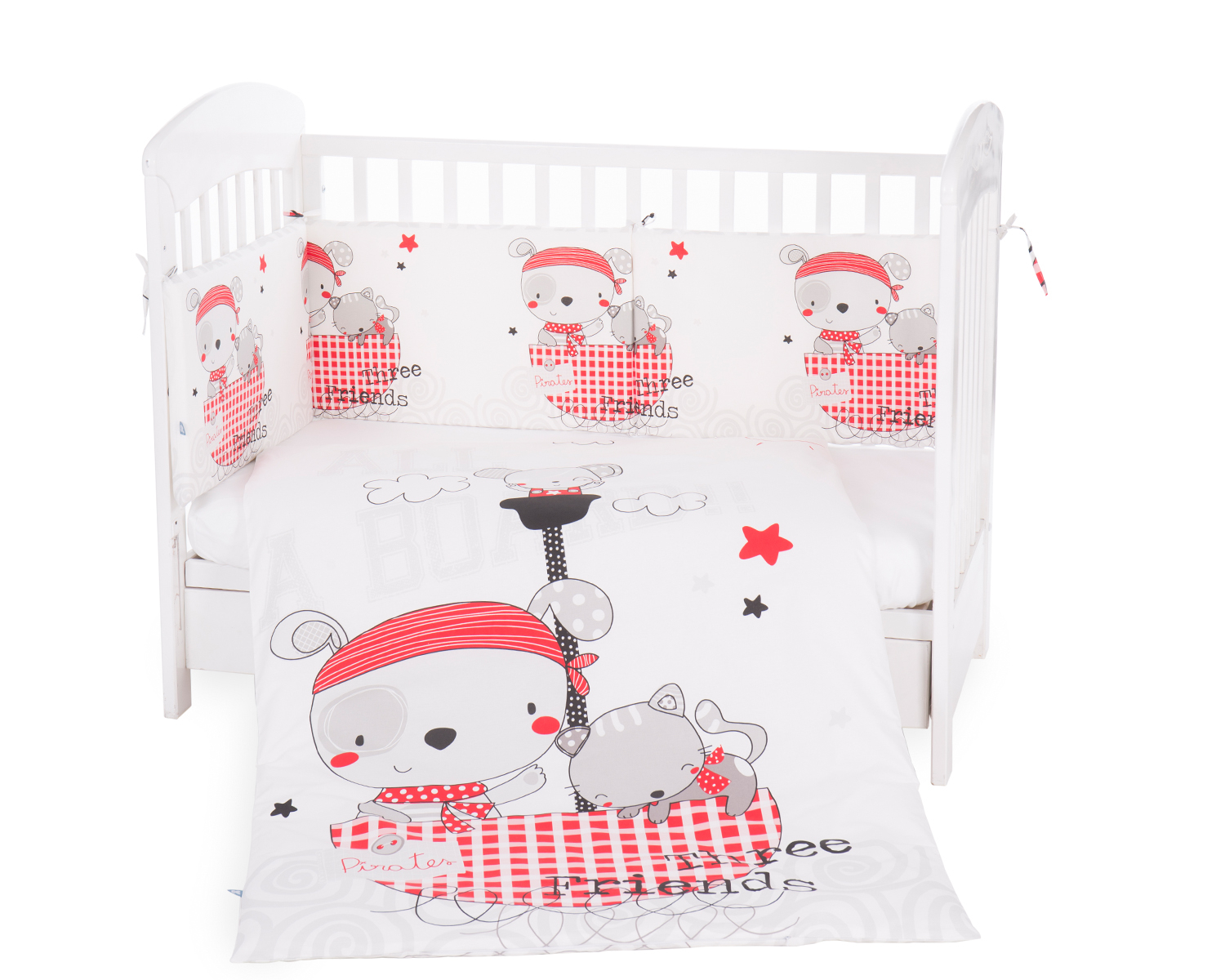 - Tour de lit demi-lit 35x210 cm composé d'une housse amovible avec fermeture éclair et de 3 pièces de rembourrage en mousse souple 35x70 cm recouvertes de textile non tissé ;