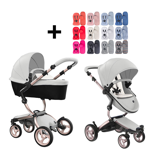 Mima | Poussette Xari | Châssis - Rose Gold | Siège + Capot - Snow White | Starter Pack - Sandy Beige