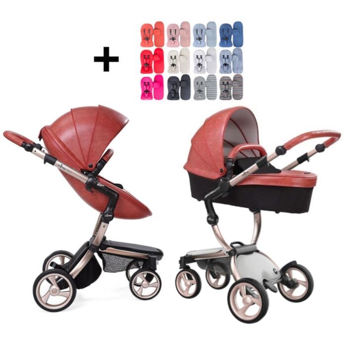 Mima Xari Kinderwagen - Frame Rosegold - Seat + Wieg Sicilian Red - Starterpack naar keuze