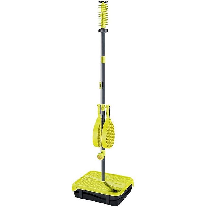 Mookie Swingball Pro set, geleverd in superhandige kunststof draagbox die tevensdient als voet en scorebord. Rackets, paal en bal eruit, water of zand erin en spelen maar! Of je nu een betegelde binnenplaats hebt of op het strand wil spelen, of binnenshuis... alles kan. Met extra spiralen voor langer speelplezier. Afmeting: ca 50 x 42 x 180 cm. Geschikt voor spelers vanaf 6 jaar.
