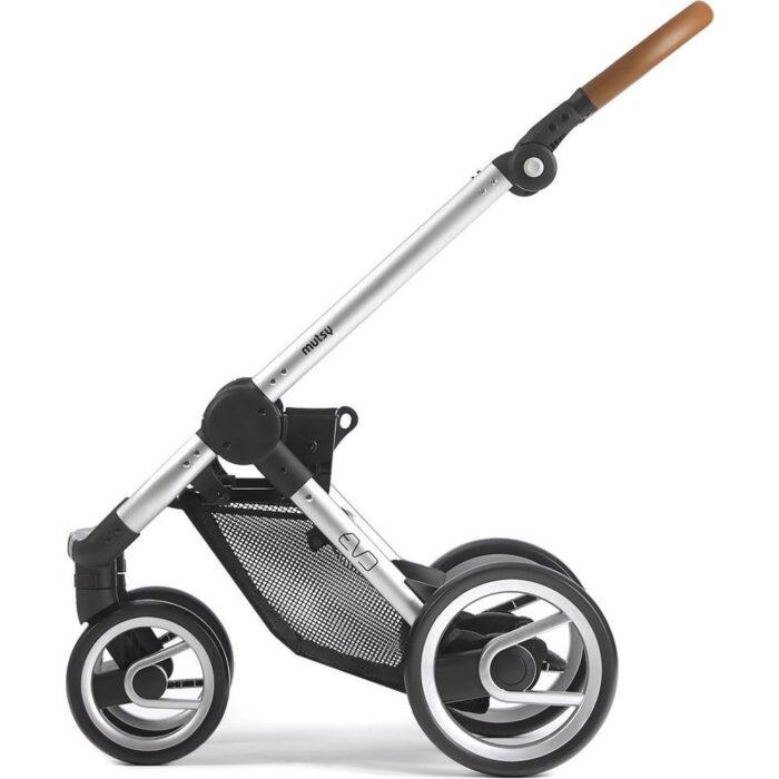 Het frame van de Mutsy Evo is licht en makkelijk in gebruik. Op het frame kan een Evo zitgedeelte, reiswieg of Maxi-Cosi autostoeltje (met behulp van adapters) worden geplaatst. Het betreft hier alleen een los frame!