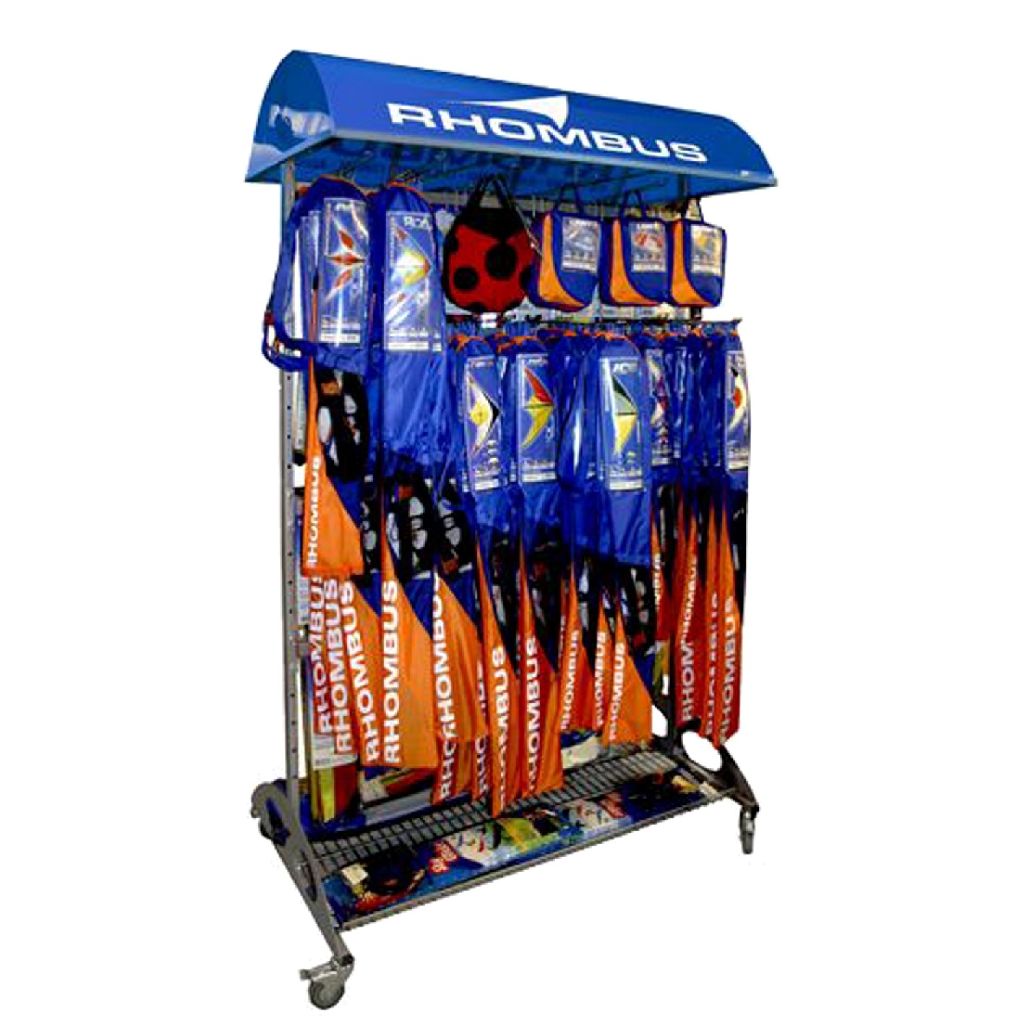 Ce présentoir est spécialement conçu pour le merchandising de tous types de produits liés au vol, qu'il s'agisse de cerfs-volants, d'équipements d'aviation ou d'autres accessoires. Son design permet de maximiser l'espace d'exposition tout en gardant les articles visibles et accessibles.
