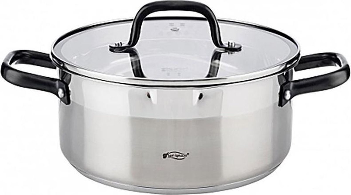 San Ignacio RVS kookpan met glazen deksel, Ø20x8.5cm, 2 liter - serie Vita (DSS-DS34313)