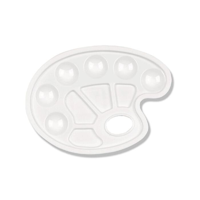 Schilderspallet van wit kunststof met 10 verschillende mengvakjes voor het gemakkelijk mengen van verf tijdens het schilderen. Dit handige gereedschap is ideaal voor kunstenaars en hobbyisten die behoefte hebben aan georganiseerde kleuren tijdens hun creatieve processen.