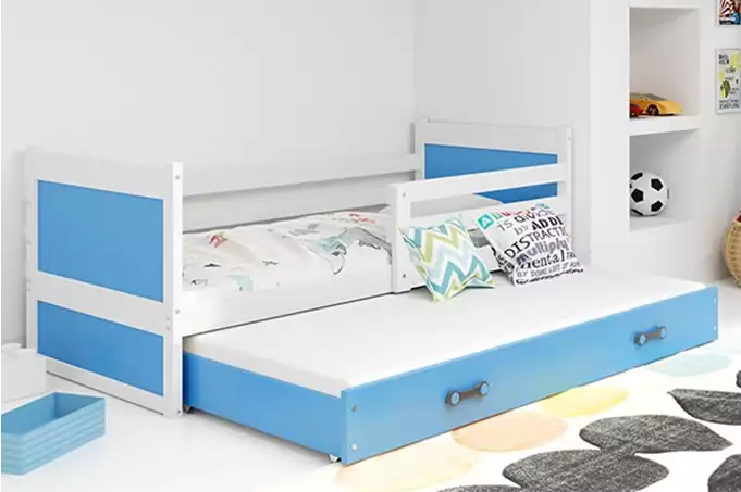RICO 90X190 Extending Youth Bed with Mattress and Drawer, White/Blue