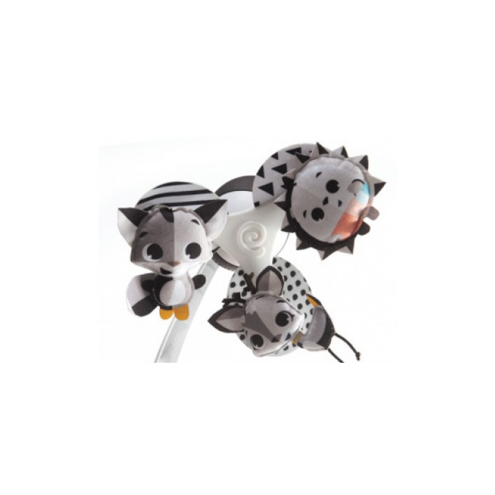 Le Tiny Love Take Along Mobile est équipé d'un système musical qui offre 30 minutes de mélodies apaisantes. Sa conception est pensée pour s'adapter facilement à divers supports tels que les berceaux, les sièges auto et les poussettes, garantissant une utilisation polyvalente à la maison comme en déplacement.