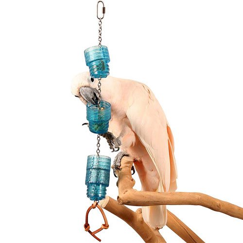 Draai de Tun and Learn Logs in elkaar en hang deze binnen bereik van uw vogel. Voor een beginnende vogel kunt u de draaitonnetjes wat losser doen. De natuurlijke nieuwsgierigheid en speelse opwinding van elke papegaai zal hem actief aan het werk zetten om de tonnetjes te openen.