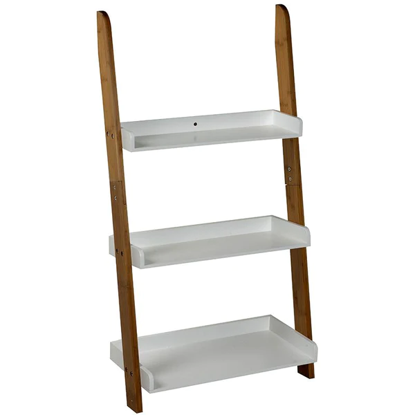 - De staanders van dit opbergek zijn gemaakt van bamboe en de schappen van wit gelakt MDF