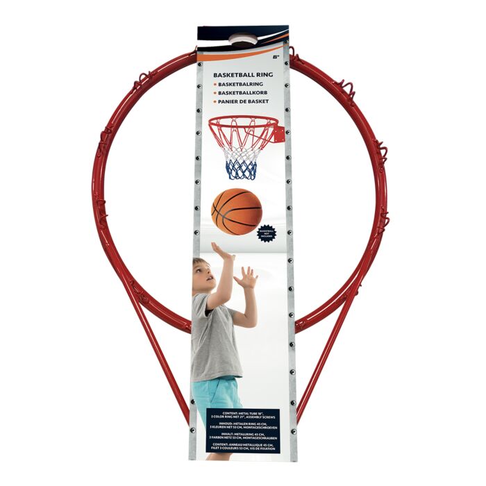 De basketbalring heeft een diameter van 53 cm en is gemaakt van hoogwaardig en duurzaam metaal.