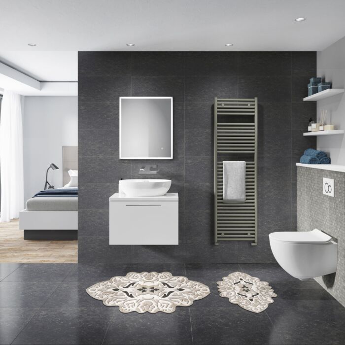 Bathmat Set (2 Pieces) 100% POLYESTER 1300 gr/m Pile Height: 10 mm Non-Slip Underside Antibacterial Washable by Machine Bathmat: 50 x 60 cm (1 Piece) Bathmat: 60 x 100 cm (1 Piece)