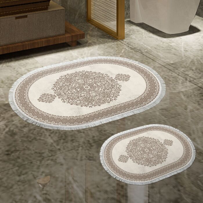 Onze set badmatten bestaat uit twee delen: een van 50 x 60 cm en een van 60 x 100 cm. Zo heb je de perfecte maat voor je badkamer. De set is verkrijgbaar in een mooie bruine kleur, die een vleugje elegantie toevoegt aan je ruimte.