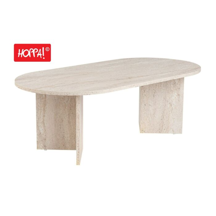 Met de Hoppa! travertijn salontafel haalt u een elegante en functionele salontafel in huis die stijl en gebruiksgemak perfect samenbrengt. Een ideale keuze voor wie zijn woonkamer wil verrijken met een luxe uitstraling en een praktische indeling.