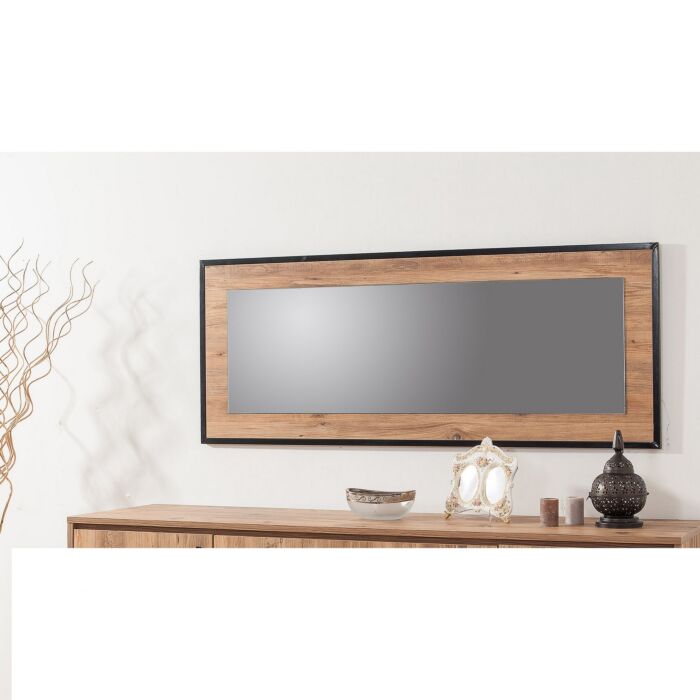 De unieke combinatie van atlantisch grenen en zwarte kleuren voegt een vleugje verfijning en moderniteit toe aan je ruimte. Of je nu streeft naar een concept met hotelinvloeden of een industrieel thema, deze spiegel past moeiteloos bij elke interieurstijl, waardoor het een veelzijdige toevoeging aan je huis is.