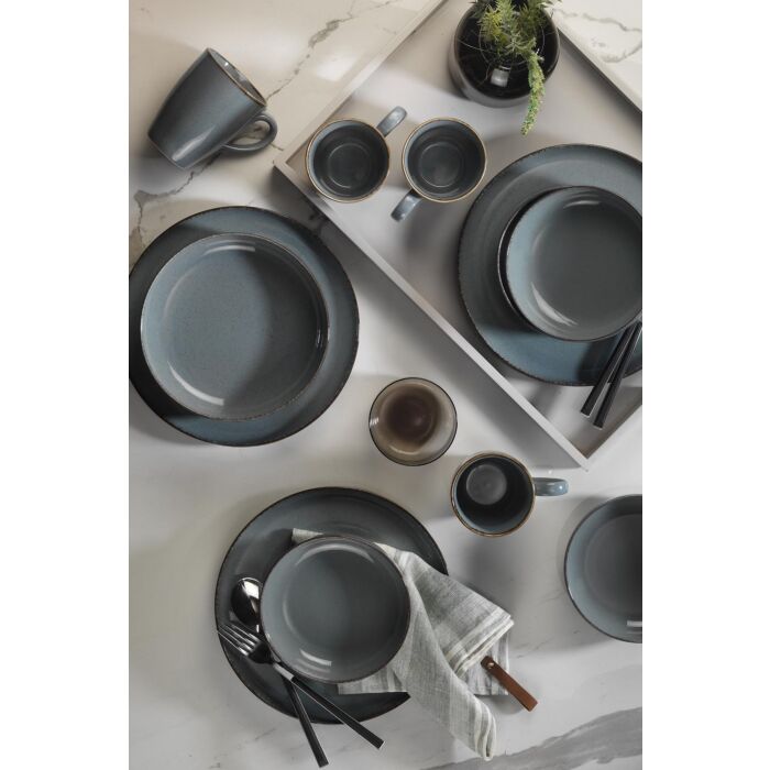 Met zijn prachtige grijze kleur past deze eetset moeiteloos bij elk interieur en voegt hij een modern en chique tintje toe aan je eettafel. De set bestaat uit 4 dienbladen, 4 borden, 4 kommen en 4 mokken en biedt alles wat je nodig hebt voor een complete eetervaring.