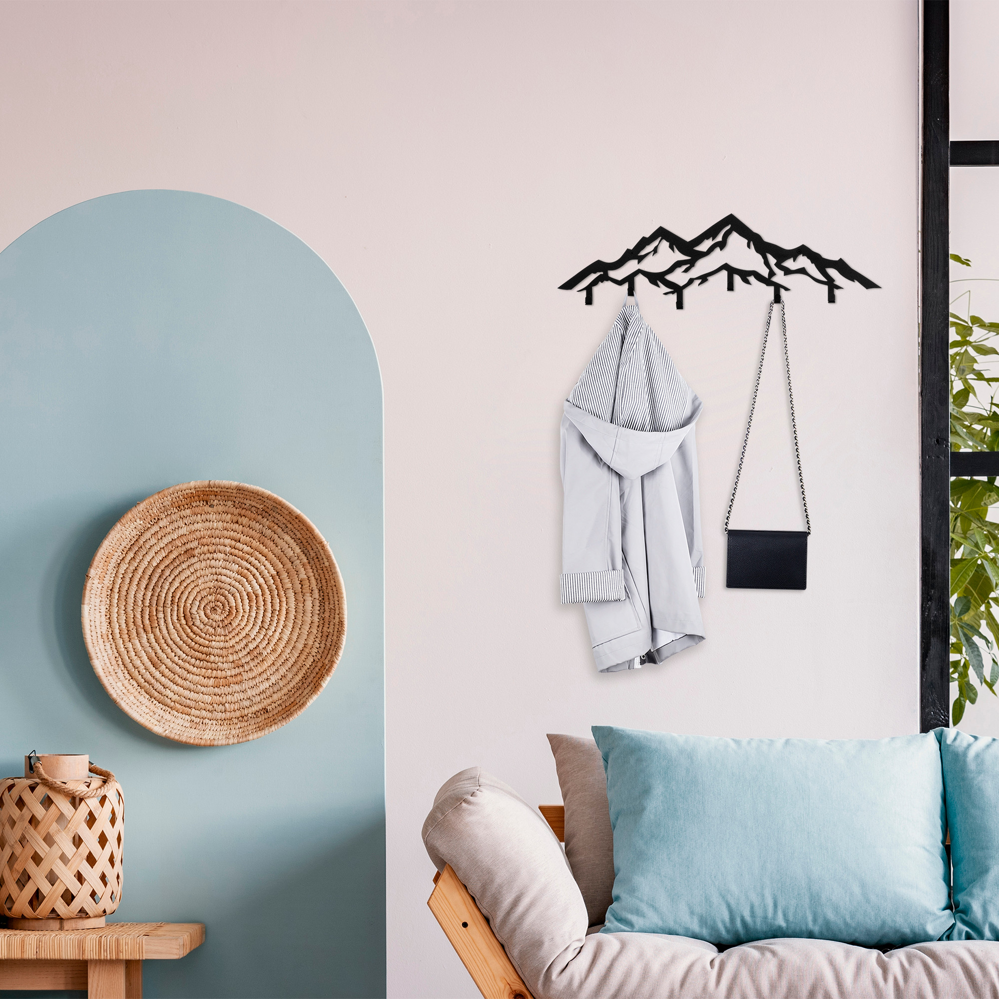Asir - Metalen wandhaak - Zwart - 80 x 4 x 25 cm