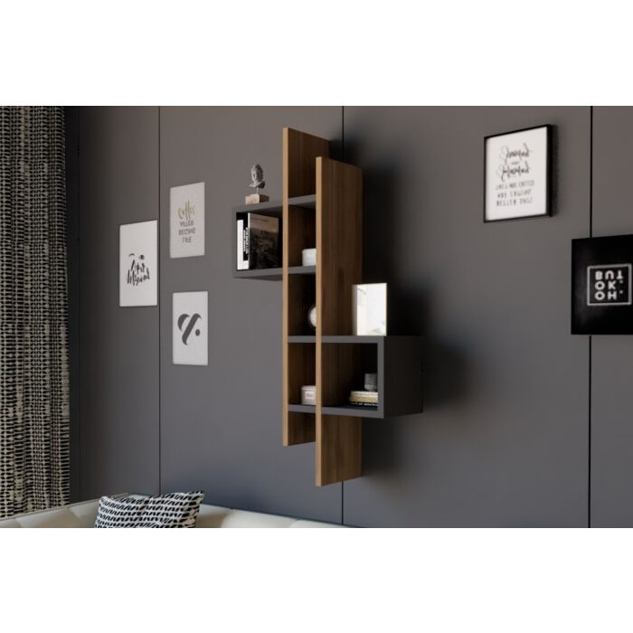 Ervaar het gemak en de veelzijdigheid van deze wandplank omdat hij eenvoudig aan de muur kan worden bevestigd, waardoor je kostbare vloerruimte bespaart en je kamer een opgeruimde en georganiseerde uitstraling krijgt. De combinatie van eikenhout en antraciet kleuren voegt een vleugje verfijning en elegantie toe aan je ruimte, waardoor het een echte blikvanger wordt.