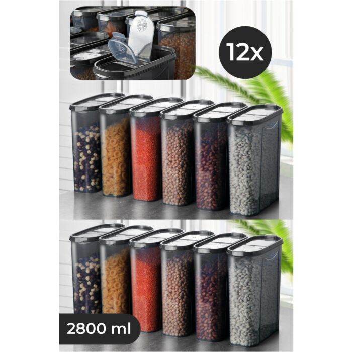 Asir - Opslagbox set (12 stuks) - Antraciet - 9 x 23,5 x 19