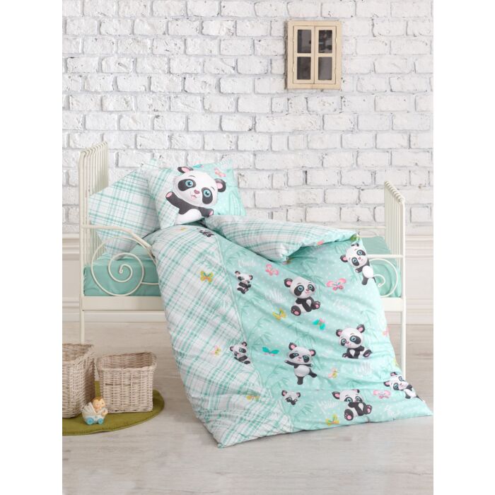 Asir Ranforce Baby Quilt Cover Set - Munt Wit