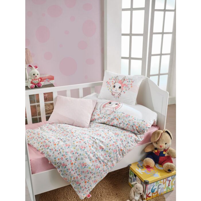 Asir Ranforce Baby Quilt Cover Set - Roze Wit