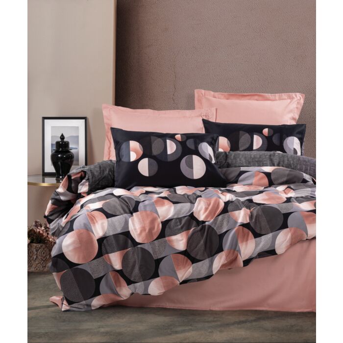Asir Satijnen dubbele quilt cover set - Zalm Zwart