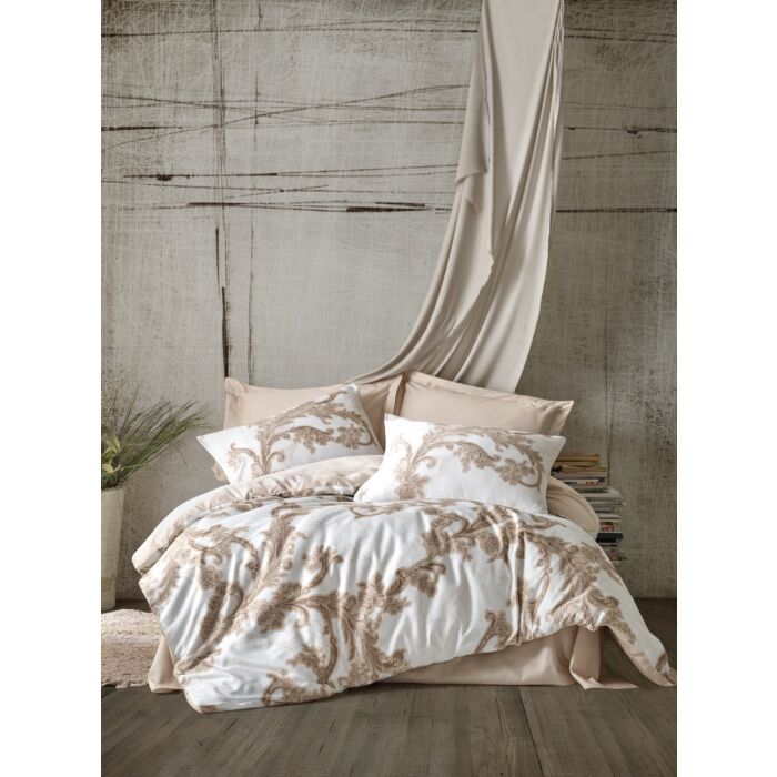 Asir Satijnen dubbele quilt cover set - Beige Wit