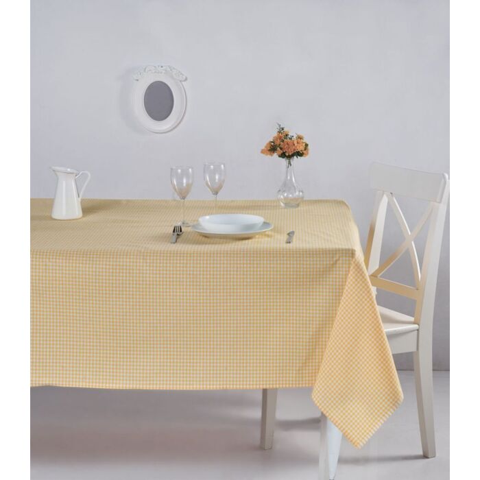 Verrijk de sfeer van je eetruimte met ons prachtige geel geruite tafelkleed. Dit tafelkleed is gemaakt van 100% katoen en straalt elegantie en verfijning uit, waardoor het de perfecte aanvulling is voor elke gelegenheid.