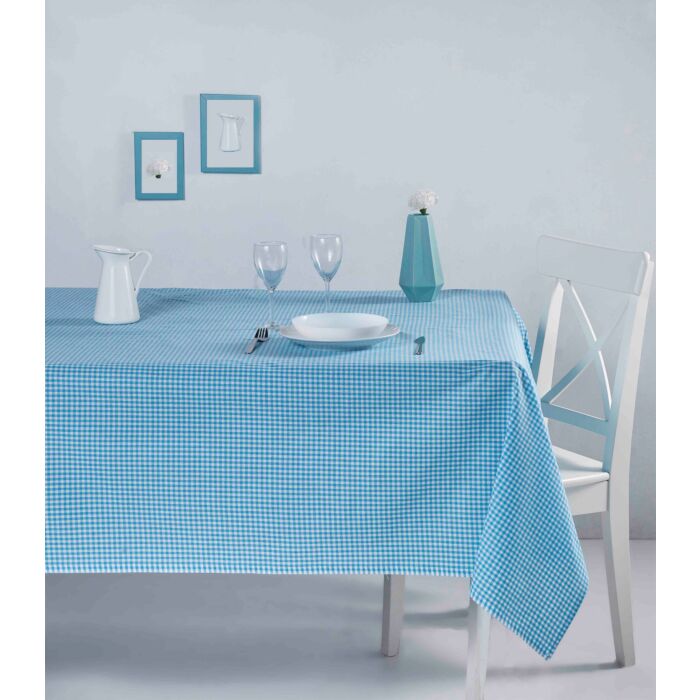 Ons tafelkleed is gemaakt van 100% katoen en straalt een gevoel van tijdloze elegantie en verfijning uit. De levendige turquoise kleur voegt een vleugje frisheid en levendigheid toe aan elke eetsetting, waardoor het perfect is voor zowel informele bijeenkomsten als formele gelegenheden. Het geruite patroon voegt een klassieke charme toe en past moeiteloos in elk interieur.