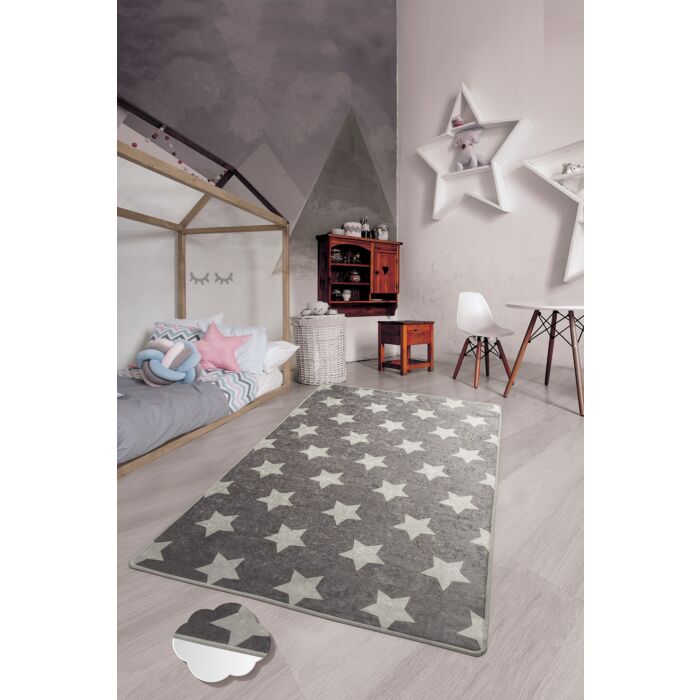 Asir Tapijt (100 x 160) - Multicolor Grijs met Witte Sterren